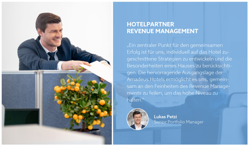 Ein weiterer Mehrwert der Partnerschaft mit HotelPartner ist für Amadeus Hotels die Betreuung durch Senior Portfolio Manager Lukas Petzi. Der Revenue Management Experte war selbst in einem der Häuser der Gruppe tätig, so dass eine langjährige Vertrauensbasis und gegenseitige Wertschätzung bestehen. Da er die Häuser so gut kennt, kann er sich besonders gut einbringen, erklärt Lukas Petzi und unterstreicht besonders die Offenheit in der Partnerschaft mit den Amadeus Hotels. Auch Reservation Managerin Milenovic stimmt zu: „Die Zusammenarbeit mit HotelPartner funktioniert hervorragend, mir persönlich ist der wertvolle Austausch besonders wichtig. Neben der fachlichen Kompetenz und Professionalität ist es gerade diese gegenseitige Wertschätzung, die die Partnerschaft so erfolgreich macht“.